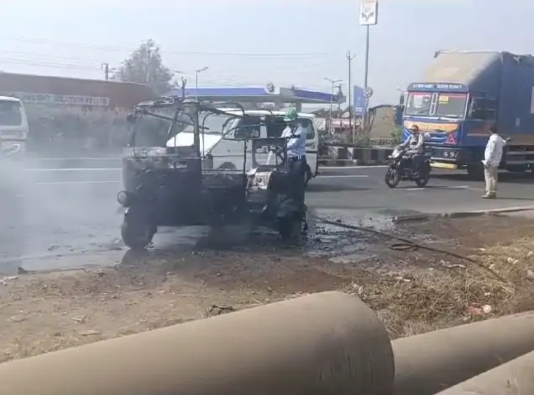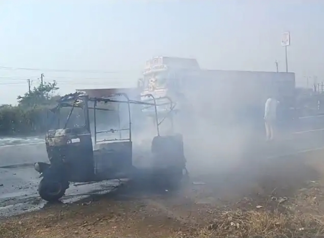 ભિલાડ હાઇવં કરમબેલા ગામ પાસે રિક્ષા સળગી, RTO ઇન્સ્પેક્ટરની સમય સૂચકતાને લઈને આગ પર કાબૂ મેળવાયો