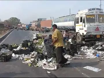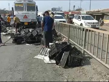 વાપી બલીઠા હાઈવે ઉપર કેરી ભરેલો ટ્રક પલટી ગયો, કેરી લેવા લોકોએ પડાપડી કરી, હાઈવે પર ટ્રાફિક જામ સર્જાયો