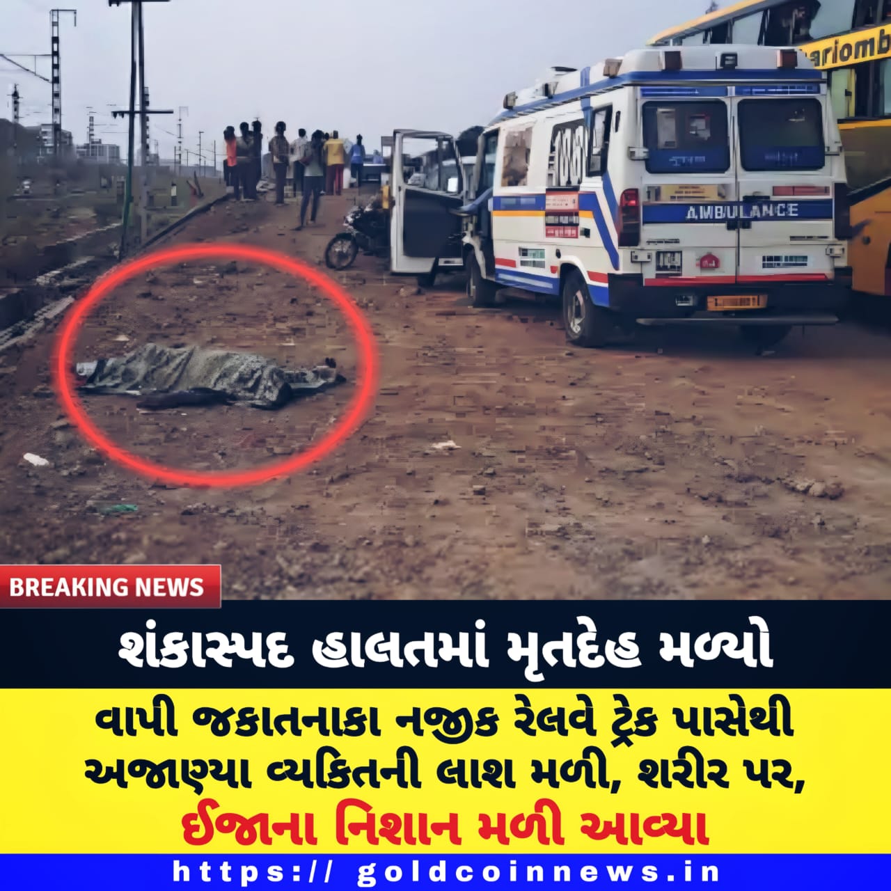 વલસાડ જિલ્લાના વાપી શહેરના જુના જકાત નાકા પાસે રેલવે ટ્રેક નજીક 3જુ જુનના રોજ સાંજે હત્યા થયેલી હાલતમાં મૃતકની લાશ મળી હતી. રસ્તા પાસેથી પસાર થતા સ્થાનિક લોકોએ શંકાસ્પદ હાલતમાં મૃતકની લાશ જોતા તાત્કાલિક વાપી ટાઉન પોલીસ મથક અને 108ની ટીમને ઘટનાની જાણ કરી હતી. વાપી ટાઉન પોલીસની ટીમે અજાણ્યા ઇસમની લાશની ઓળખ કરવા સોશિયલ મીડિયાના માધ્યમથી લાશના ફોટા અગ્રણીઓને મોકલાવી લાશની ઓળખ કરવાનો પ્રયાસ હાથ ધર્યો હતો.