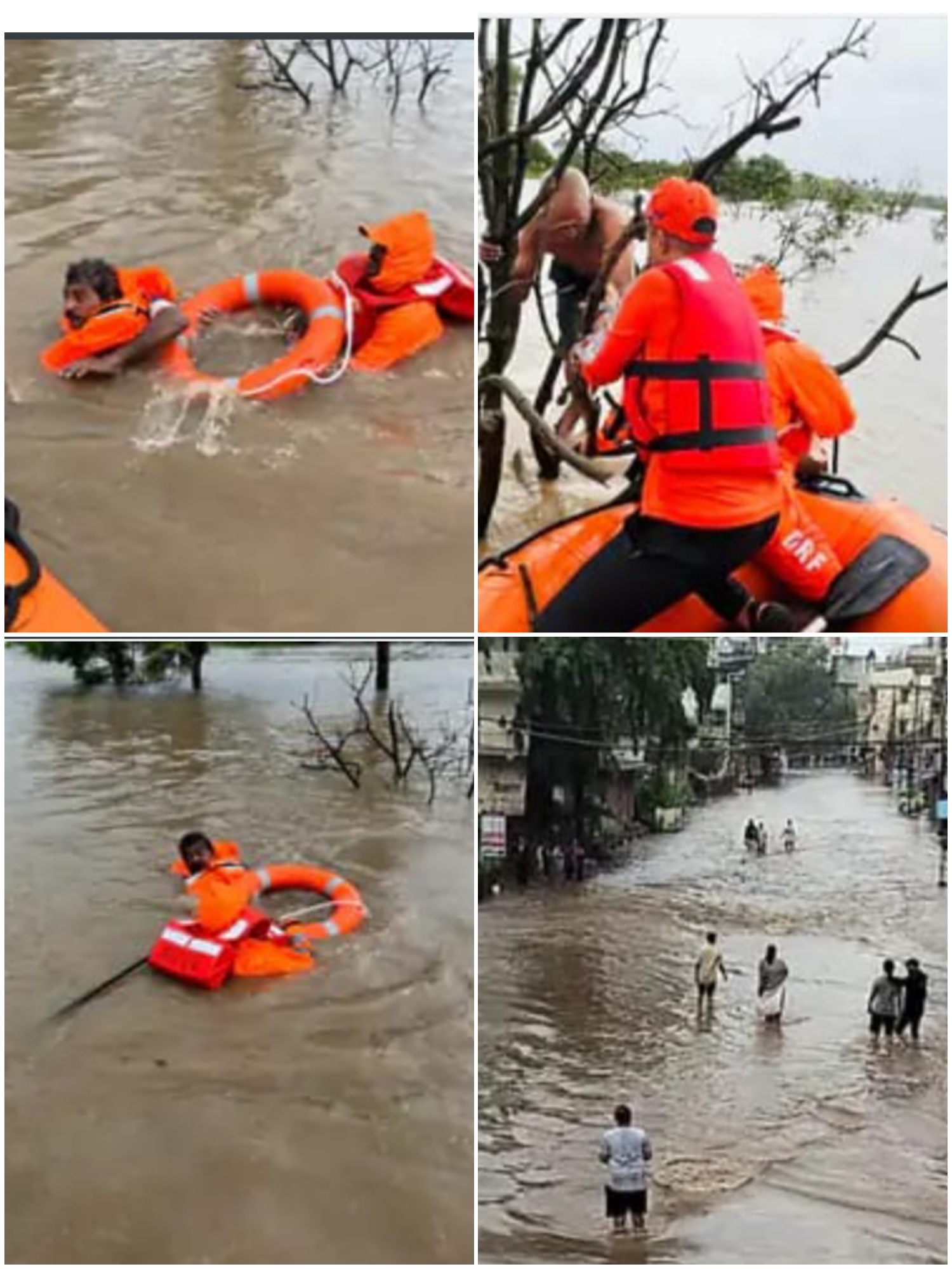 વલસાડના વેજલપોર વિસ્તારમાં આવેલા કેટલાક મકાનોમાં વરસાદી પાણીનો ભરાવો થતા લોકોના ઘરોની અંદર ઔરંગા નદી અને વરસાદી પાણીનો ભરાવો થયો હતો. સ્થાનિક લોકોએ જીવન જોખમે મહિલાઓનું રેસ્ક્યુ કરવાની નોબત આવી હતી. વલસાડના જુના કોસંબા રોડ ઉપર આવેલી વાડીમાં કામ કરતા 2 ઈસમો 3 કલાકથી ઝાડમાં બેસી રહ્યા હતા. વલસાડ ખાતે રોકાયેલી NDRFની ટીમે સુરક્ષિત રેસ્ક્યુ ઓપરેશન હાથ ધરી બંને ઇસમોનું રેસ્ક્યુ ઓપરેશન હાથ ધરવામાં આવ્યું હતું.