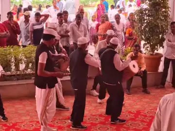 વલસાડ જિલ્લાના કપરાડા ધારાસભ્ય અને રાજ્યના પૂર્વ મંત્રી જીતુભાઈ ચૌધરી ના ઘરે આ વર્ષે પણ મેળા જેવો માહોલ જામ્યો હતો..આ વર્ષે પણ તેમના ઘરે નવા વર્ષના નિમિતે સ્નેહમિલન કાર્યક્રમ નું આયોજન કરવામાં આવ્યું હતું આ કાર્યક્રમમાં સમગ્ર કપરાડા તાલુકા અને જિલ્લા ભરમાંથી લોકો આવ્યા હતા. વલસાડ જિલ્લાના કપરાડા અને ધરમપુર તાલુકા જેવા આદિવાસી વિસ્તારોમાં પરંપરાગત રીતે નવા વર્ષ ને આવકારવા અને ખેતરમાં તૈયાર થયેલા નવા પાકની ખુશીમાં આદિવાસીઓ ઘોર નૃત્ય કરે છે.. આ વિસ્તારમાં ઘેરૈયા ટોળકીઓ ગામે ગામ ફરે છે. અને લોકો ને માતાજીના આશીર્વાદ આપે છે. ઘેરૈયા ટોળકીને યજમાન પરિવારો ઉત્સાહપૂર્વક આવકારે છે. ત્યારે વલસાડ જિલ્લાના કપરાડાના ધારાસભ્ય અને રાજ્યના પૂર્વ નર્મદા કલ્પસર અને પાણી પુરવઠા મંત્રી જીતુભાઈ ચૌધરીના ઘરે પણ ઘેરૈયા ટોળકીઓ પહોંચી અને પરંપરાગત રીતે નવા વર્ષની ઉજવણી કરી હતી.