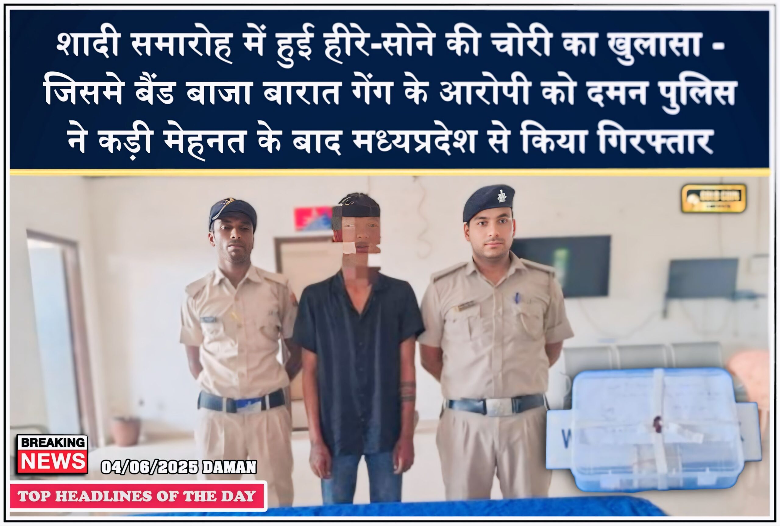 शादी समारोह में हुई हीरे-सोने की चोरी का खुलासा – जिसमे बैंड बाजा बारात गेंग के आरोपी को दमन पुलिस ने कड़ी मेहनत के बाद मध्यप्रदेश से किया गिरफ्तार