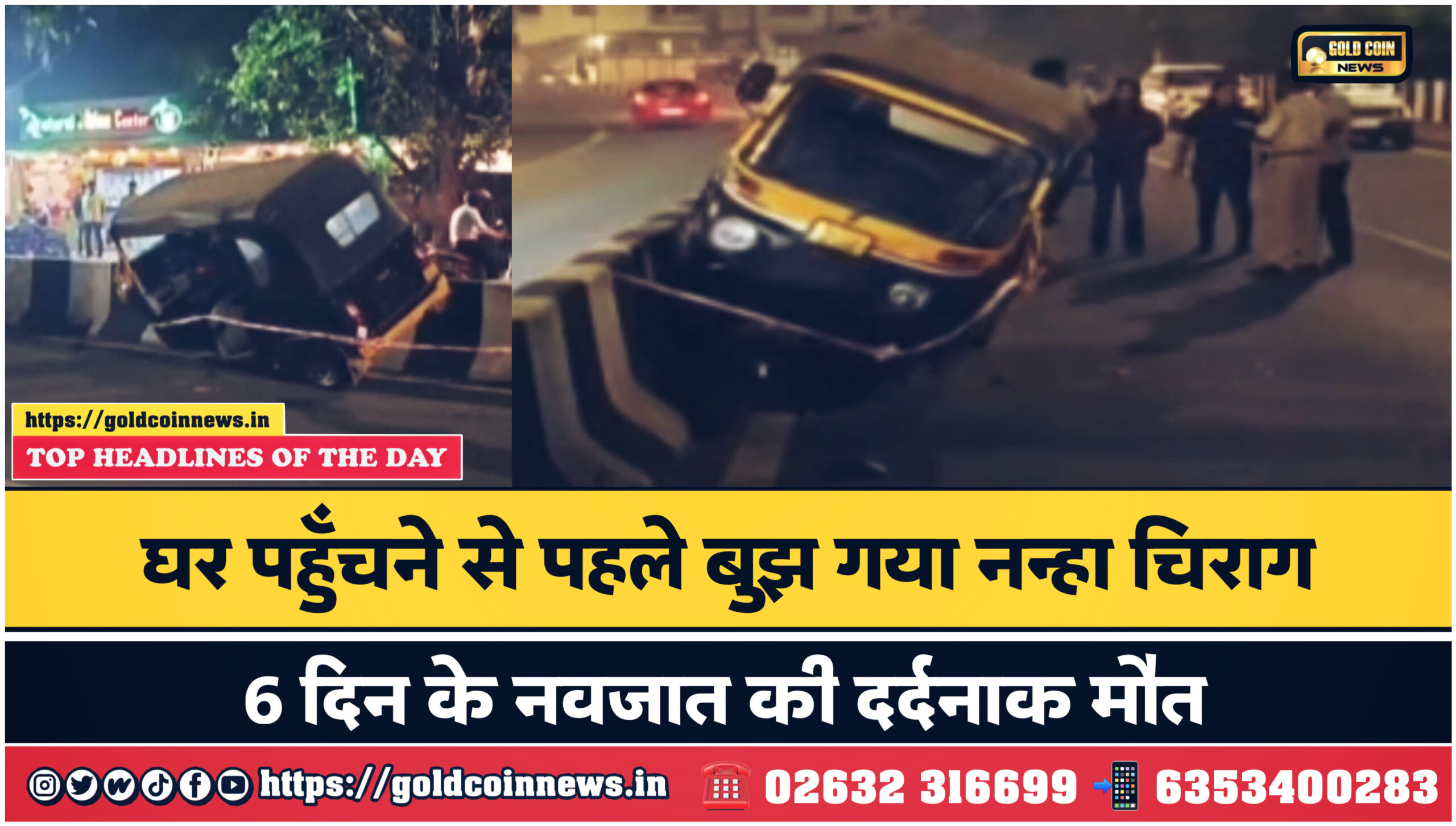 जैसे ही रिक्शा दमन के बड़े पुल के पास पहुँचा, चालक ने अचानक वाहन से नियंत्रण खो दिया और रिक्शा तेज़ी से सड़क के डिवाइडर से टकरा गया। टक्कर इतनी जोरदार थी कि मां की गोद में बैठा 6 दिन का नवजात उछलकर सड़क पर गिर पड़ा, जिससे मौके पर ही उसकी मौत हो गई।