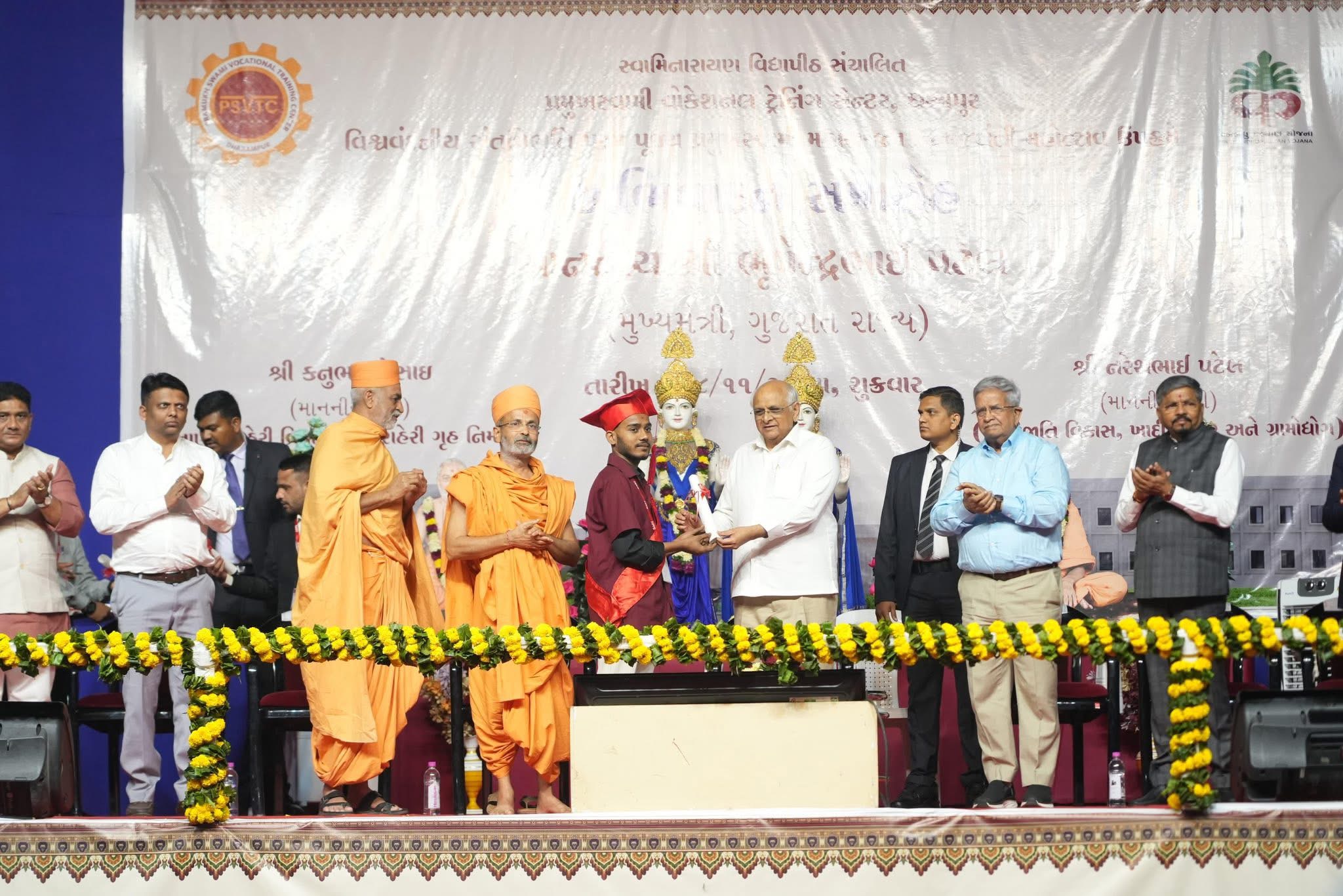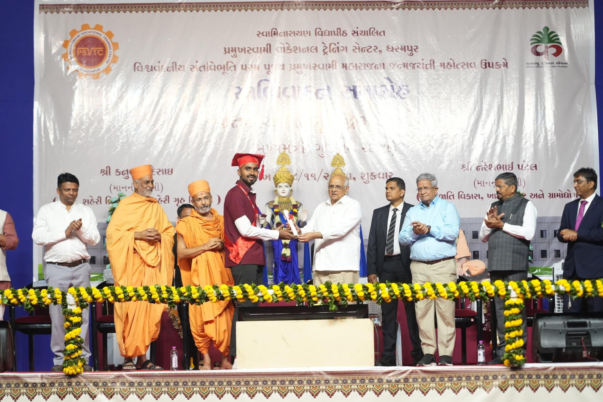 આજરોજ સ્વામીનારાયણ સંપ્રદાયના પ્રમુખ સ્વામી મહારાજની જન્મજયંતિને અવસરતું ધરમપુર ખાતે ભવ્ય ધાર્મિક તથા સાંસ્કૃતિક કાર્યક્રમનું આયોજન કરવામાં આવ્યું હતું. કાર્યક્રમમાં રાજ્યના મુખ્યમંત્રી શ્રી ભૂપેન્દ્રભાઈ પટેલ અધ્યક્ષસ્થાને હાજર રહ્યા હતા.