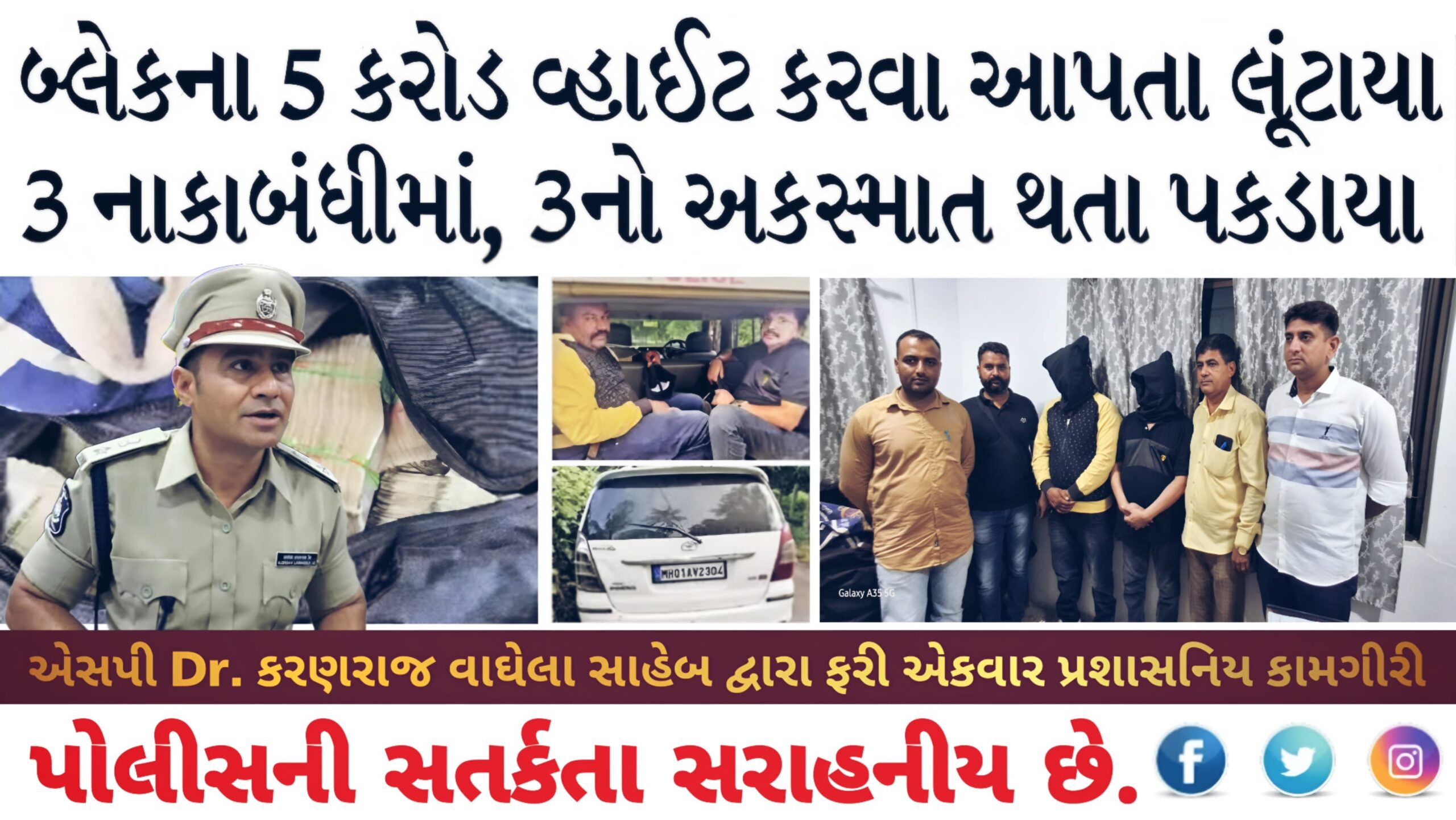 ✅વલસાડ જિલ્લા પોલીસની ટીમે બાતમી વાળી કારનો ફિલ્મીઢબે પીછો કર્યો, ચારેય આરોપીને ઝડપી પાડ્યા. ✅ પોલીસે વલસાડથી મુદ્દામાલ સાથે આરોપીઓને પકડી પાડ્યા ✅ કરોડો રૂપિયા