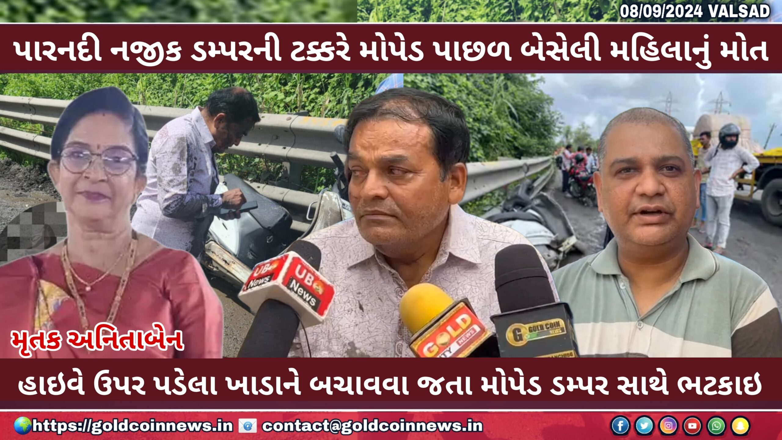 હાઇવે ઉપર પડેલા ખાડાને બચાવવા જતા મોપેડ ડમ્પર સાથે ભટકાઇ પારડી પાર નદીના બ્રિજનો ક્રોસ કર્યા બાદ અતુલ પાવર હાઉસ પાસે રવિવારના રોજ બપોરે વલસાડ