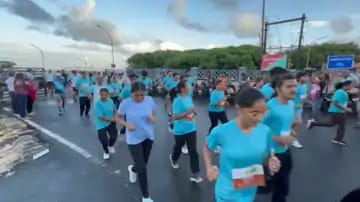 તિથલ બીચ ઉપર ફિઝિયોથેરાપિસ્ટ સાથે લોકો ફિઝિયો ફિટ મેરેથોનમાં દોડ્યા