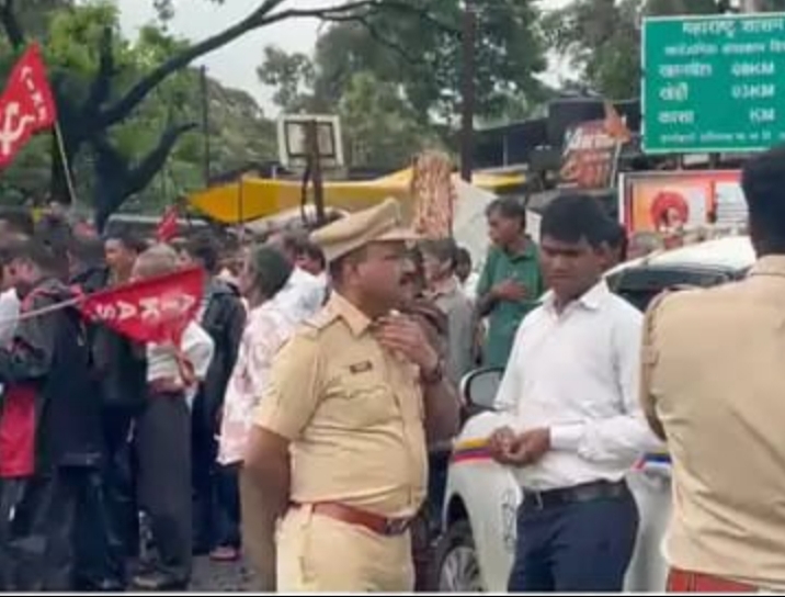 મહારાષ્ટ્ર સરહદે દાનહ આવતા ભારે વાહનો રોકી CPM કાર્યકરોનો વિરોધ
