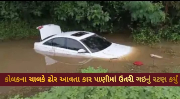 પારડીના ઉમરસાડી કોસ્ટલ હાઇવે પર કાર ખનકીનાં પાણીમાં ખાબકી