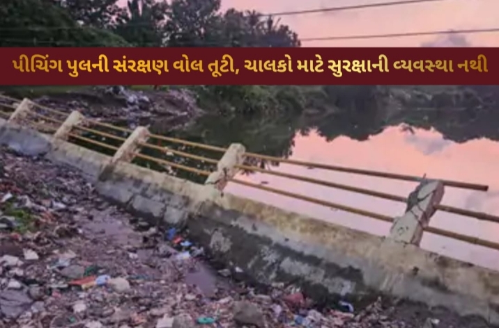 વલસાડમાં પીચિંગ પુલની સંરક્ષણ વોલ તૂટી, ચાલકો માટે સુરક્ષાની વ્યવસ્થા નથી