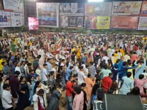 પાંચમા નોરતાની રાત્રે વલસાડમાં ખેલૈયાઓએ ગરબાની રમઝટ બોલાવી, માતાજીના દુહા-છંદ અને ગુજરાતી ગીતો પર ગરબે ઘૂમ્યા