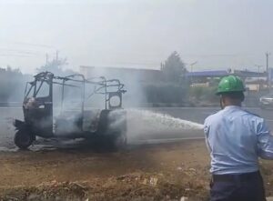 ભિલાડ હાઇવં કરમબેલા ગામ પાસે રિક્ષા સળગી, RTO ઇન્સ્પેક્ટરની સમય સૂચકતાને લઈને આગ પર કાબૂ મેળવાયો