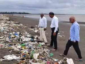 5 કિલોમીટર સુધી મેડિકલ વેસ્ટ અને પ્લાસ્ટિકના કોથળાઓ કિનારે ફેંકાયા, માછીમારોની જાળમાં પણ નુકસાન. વલસાડના મગોદ ગામના દરિયા કિનારે આઠ દિવસ પહેલા આવેલી ભરતીએ ચિંતાજનક